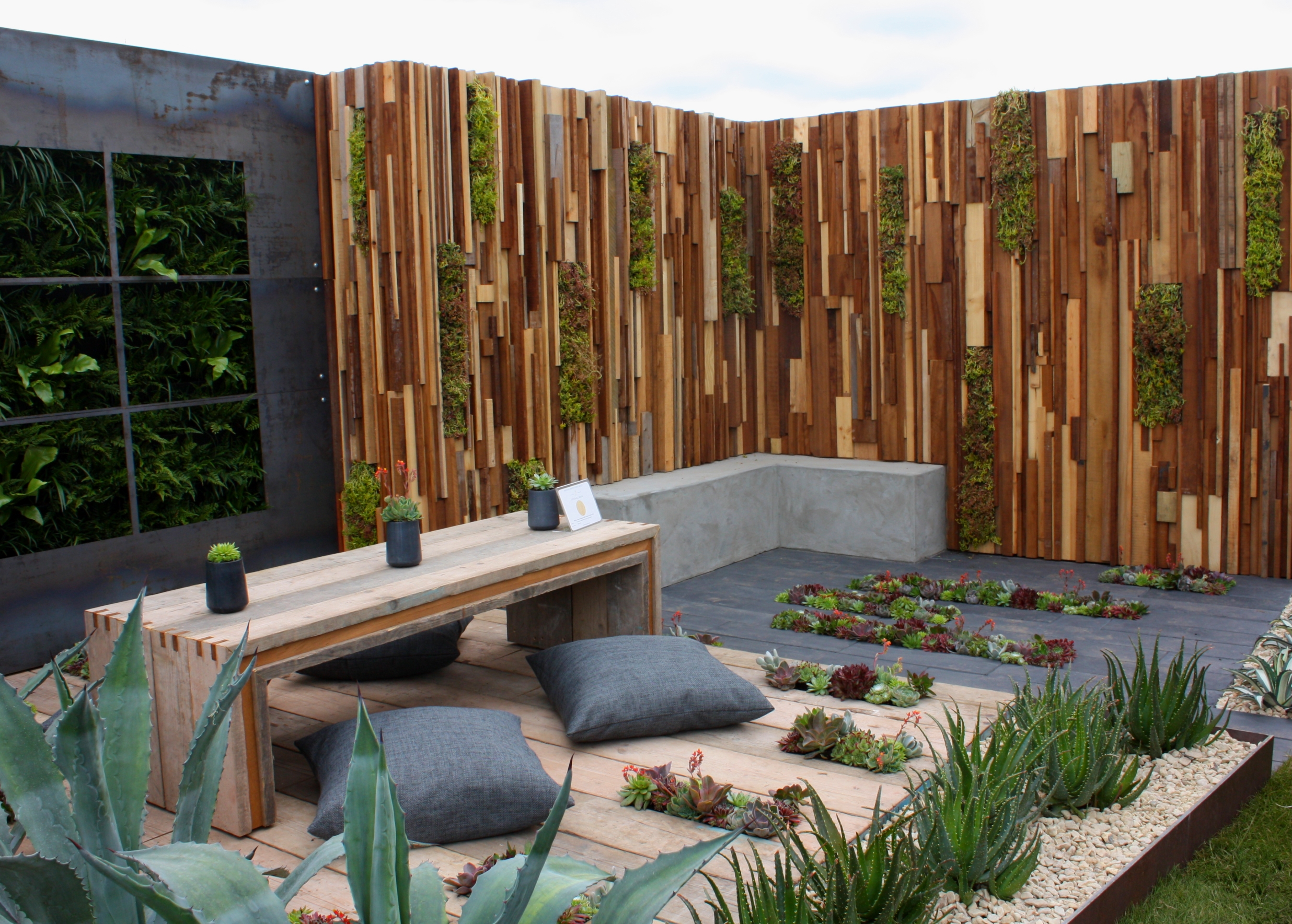 The Austerity Garden was designed by Jade Goto and Armando Raish to demonstrate that good design can be achieved on a budget. The design drew inspiration from Mexican yards, for both materials and aesthetics and won a Silve-gilt medal and was voted the Best Show garden.