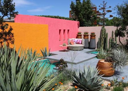 The Beneath a Mexican Sky Garden was designed by Manoj Malde was inspired by the work of Mexican Modernist architect Luis Barragan. This garden won a Silver-Gilt medal.